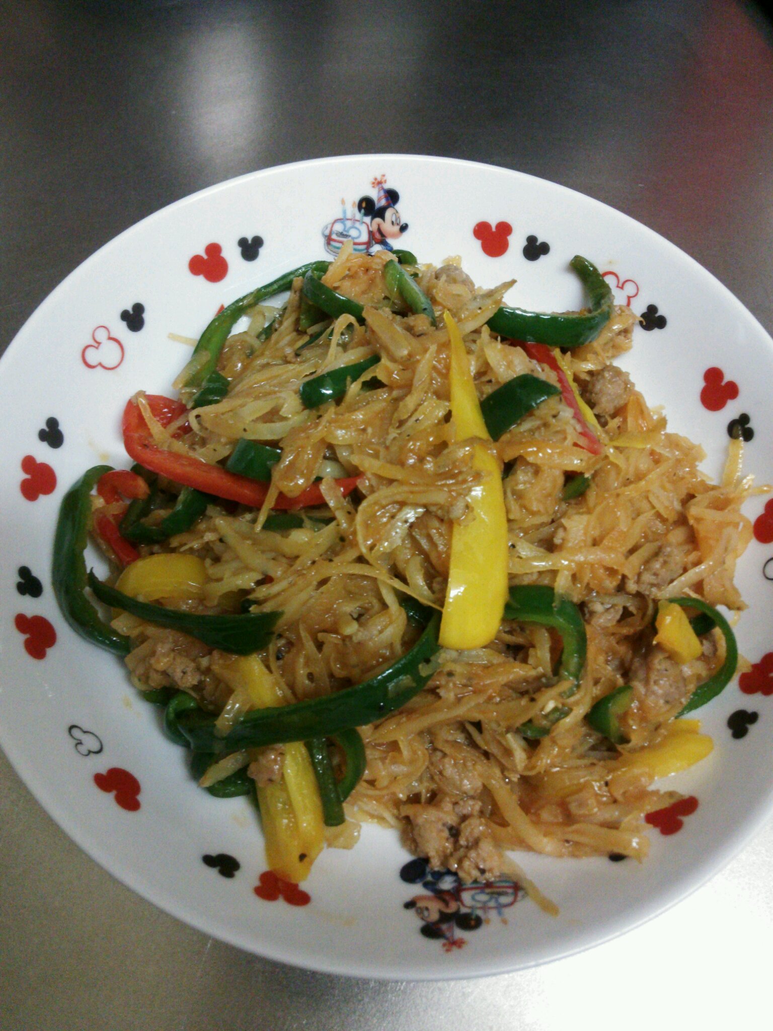 今回は、「ジャガイモとひき肉のチンジャオ風」をチャチャッと作りました。焼きそばじゃありません。メインはジャガイモの千切り、シャキシャキの食感です。